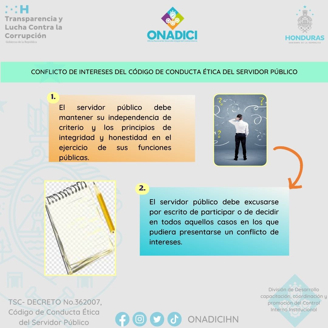 Código de Conducta Ética del Servidor Público – https://www.tsc.gob.hn/web/Normativa%20Vigente/Normativas%20Externas_pdf/CODIGO_%20DE_CONDUCTA_ETICA_DEL_SERVIDOR_PUBLICO.pdf