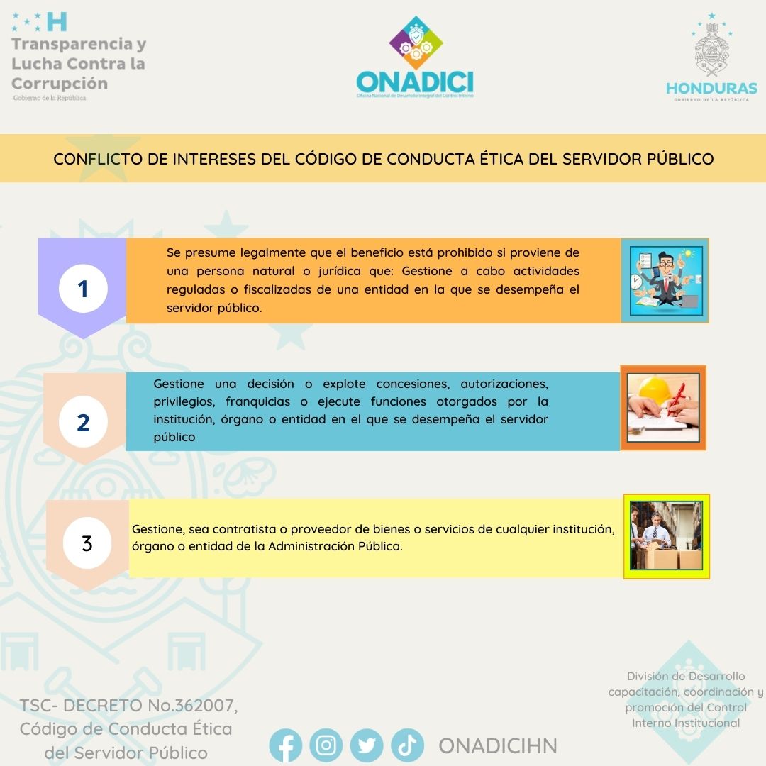 Código de Conducta Ética del Servidor Público – https://www.tsc.gob.hn/web/Normativa%20Vigente/Normativas%20Externas_pdf/CODIGO_%20DE_CONDUCTA_ETICA_DEL_SERVIDOR_PUBLICO.pdf