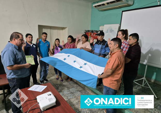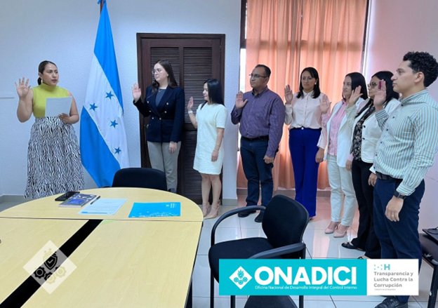 10 de Julio de 2024 La Secretar铆a de Transparencia y Lucha Contra la Corrupci贸n, a trav茅s de la Oficina Nacional de Desarrollo Integral de Control Interno (ONADICI), fue testigo de la juramentaci贸n del nuevo Comit茅 de Control Interno de la Municipalidad de Moraz谩n, Yoro. El Alcalde Mauricio Handal tom贸 la promesa y reiter贸 su compromiso con la implementaci贸n y mejora de los controles internos. Adem谩s, los t茅cnicos municipales ya han comenzado el proceso de fortalecimiento de sus capacidades para liderar la implementaci贸n del Marco Rector de Control Interno Institucional de los Recursos P煤blicos (MARCI), asegurando as铆 el cumplimiento de los objetivos de la municipalidad.