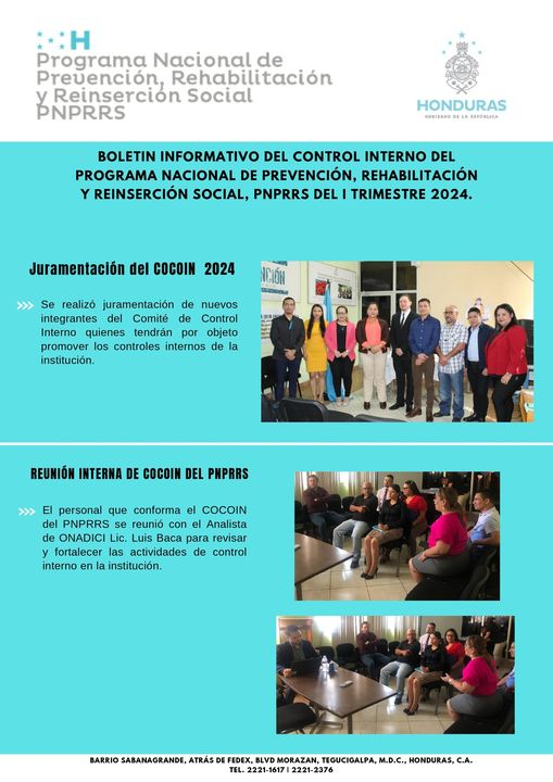 10 de Mayo de 2024 La Secretar铆a de Transparencia y Lucha Contra la Corrupci贸n (STLCC) a trav茅s de la Oficina Nacional de Desarrollo Integral de Control Interno (ONADICI) da a conocer el Bolet铆n informativo I Trimestre 2024 del Programa Nacional de Prevenci贸n, Rehabilitaci贸n Reinserci贸n Social (PNPRRS)